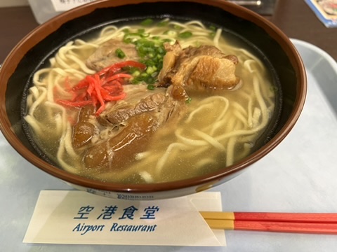 那覇に戻ったらまずは預け入れ荷物受け取りエリアに貼ってあったRubyKaigiの広告を写真に撮った。石垣からの飛行機にRubyistはいなかった気がするけど、受取エリアや出たところには結構いた。広告の写真を撮っている人や、出たところにいる人たちで見たことがある顔がちらほら。RubyKaigiに来たんだなー!という気持ちが高まった。お昼を食べていなかったのと、石垣島で八重山そばを食べそこねていたのが気になっていたので空港食堂でソーキそばを食べた。塩味のスープに素朴な麺と食べごたえのあるソーキがドンと乗っていた。ソーキは豚軟骨だった。肉部分が大きく、軟骨もやわらかく煮てあってとても美味しかった。スタミナがつく系の食べ物でもあるのかもと思った。